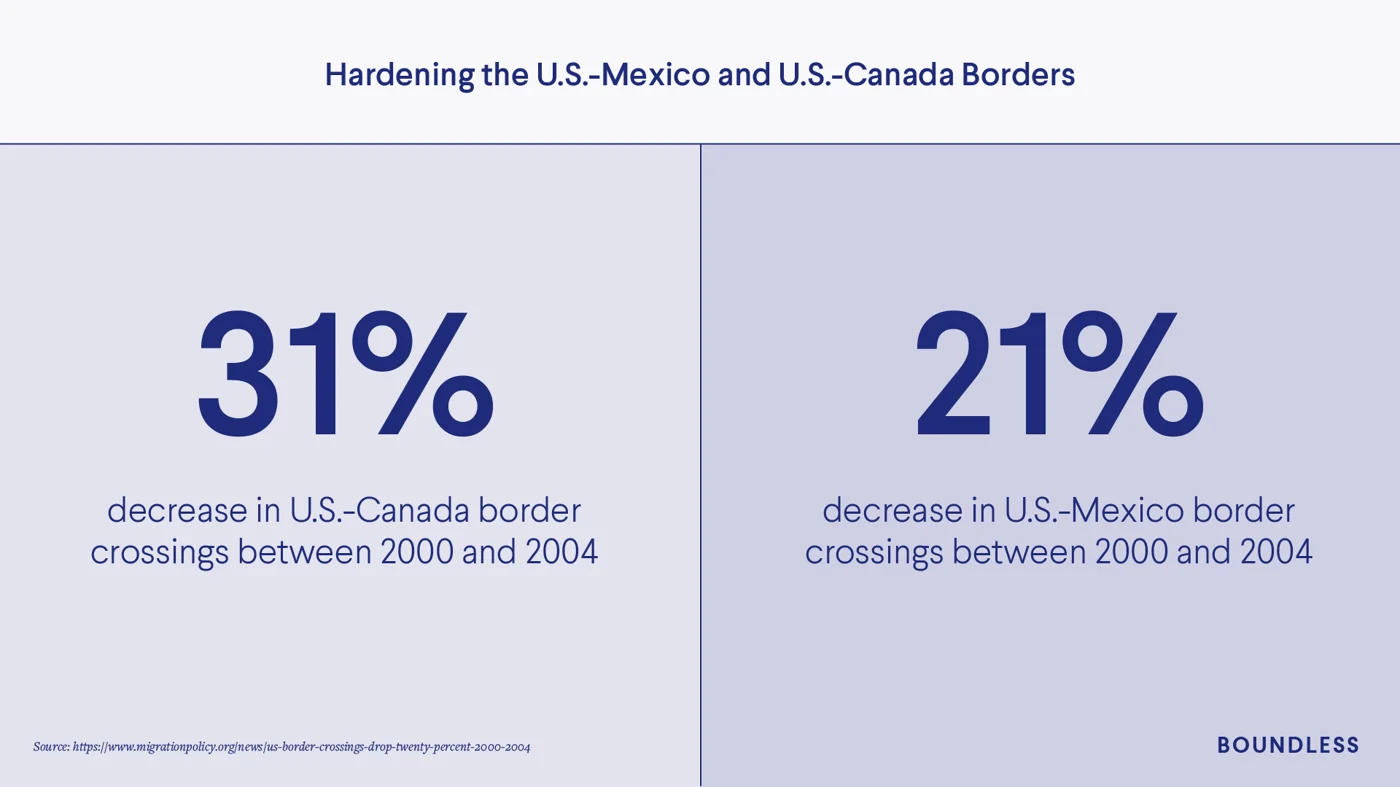 Although most visitors and immigrants pose minimal risk to American security, public opposition to immigration of all forms rose sharply following 9/11. According to the Migration Policy Institute, the negotiation for a U.S.-Mexico bilateral migration agreement collapsed almost immediately.